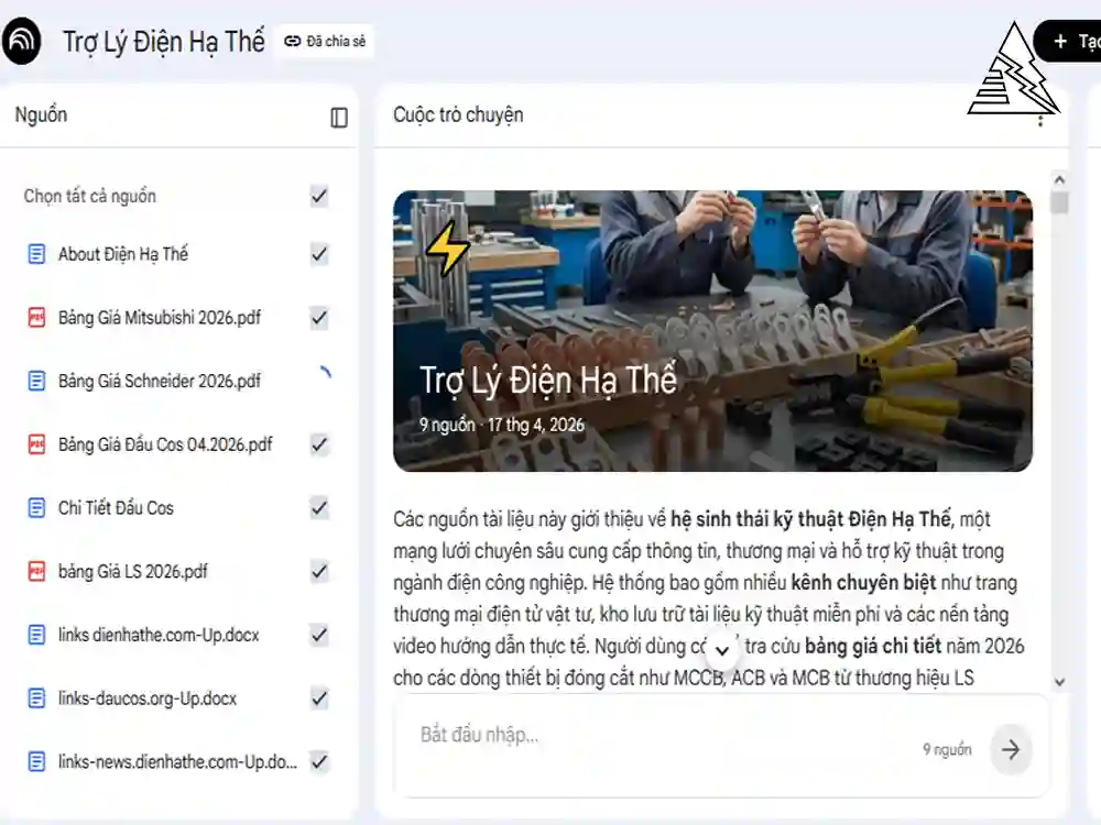Trợ Lý AI Điện Hạ Thế là nền tảng trí tuệ nhân tạo thế hệ mới của Google. Khác với các chatbot thông thường, Trợ lý AI của chúng tôi được “huấn luyện” chuyên sâu dựa trên chính danh mục sản phẩm, bảng giá và tài liệu kỹ thuật của Điện Ha Thế. Thay vì phải tự mình rà soát hàng ngàn mã hàng, giờ đây bạn chỉ cần “hỏi và đáp”. Trợ lý sẽ truy xuất dữ liệu chính xác tuyệt đối từ nguồn tài liệu niêm yết của chúng tôi để phản hồi bạn.
